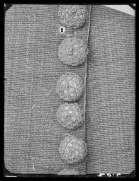 | Keywords: Jacka av grå kamlott. Tillhört Karl X Gustav (1622-1660) - Livrustkammaren - 70981.tif LSH artwork sv Denna dräkt består av jacka byxor och kanoner av grå kamlott d'Hollande Materialet är gråbrun yllekamlott med en vådbredd av 77 cm utan stad 20x8 5 tr/cm2 Varpen består av 1ljus och 1 mörk tråd som tvinnats åt höger tillsammans och inslaget består av 3 ljusa otvinnade trådar Staden utgörs av enbart 2 vita trådar Jackan som till sin form mycket påminner om jackan till dräkt nr 3419 är sydd av 4 storastycken som vidgats i sidorna och rundats i kanten Den har ca 37 cm öppna skört i sidornaoch bak Jackan har sytts ihop med korta sidosömmar och mitt bak endast till midjan Ärmarna består av 2 stycken och har öppna framsömmar Jackan är mitt fram 69 cm lång ståndkragen oräknad denna är 5 cm hög mitt fram och mitt bak 3 5 cm Mitt bak är jackan 73cm lång utan krage Den har sytts så att dess korta sidosömmar sömmen mitt bak ochaxelsömmarna sytts samman från baksidan Ärmarna har sytts ihop så att överstyckena ligger ovanpå de undre i den utsvängda baksömmenoch ärmarna har sedan trätts genom ärmhålet Endast den lilla korta framsömmen 15 cmlång nedanför det ca 35 cm långa sprundet har sytts ihop från baksidan I baksömmen påärmen är den nedre - raka - delen ca 15 cm lång öppen för att kunna bilda uppslag och harhär försetts med en skoning av brun rips Jackan verkar ej ha haft något mellanfoder men iärmuppslagen sitter papper mellan fodret och tyget Detta utgör styvnad för denursprungliga fastsydda garneringen av silverspets ty täta hål efter stygn visar att mansytt genom pappret det har varit en ca 9 cm bred spetsbesättning Jackan är fodrad medsilvermoiré med en vådbredd av 49 cm utan stad 64x14 tr/cm2 Varp och inslag är av vittotvinnat silke I varje inslag ligger på rätan en silverlan Stad 0 7 cm 6 gröna 6 gula 6 gröna 6 gula 6 gröna trådar samt 1 tjock vit - ripsbindning Mitt i tyget syns en randefter vattringen Jackans foder är skuret på samma sätt som tyget i övrigt dock har man omedelbart ovanförsidoskörtets öppning satt in 2 horisontella kilar för att göra plagget mindre åtstramande De är något varierande i storlek och placering men ca 1 cm långa Fram har jackan en helobruten rad av knapphål på vänster sida vilket ju icke är fallet med jackan nr 23 Det ärinalles 29 knapphål 3 5 cm långa och sydda med brunt högertvinnat silke över silkestråd 8stygn/cm På höger sida sitter utefter hela kanten 28 st d 2 cm knappar av vilka dockendast de 17 översta kunnat begagnas eftersom fodret täcker de följande På vänsterframstycke finns i sidokanten 15 knappar och på höger framstyckes sidokant 16 st svarandemot de 16 knapphål som sitter i sidostyckena och baksprundet Inte någon knapp i sprundenmitt bak eller i sidorna har kunnat knäppas ty fodret har hela vägen sytts över hålen Baktill finns på vänster stycke endast 13 knappar kvar På vänster ärms överstycke sitterav knappgarneringen endast 8 knappar kvar på höger ärm finns 14 knappar kvar Ärmarnasbakstycken har vardera 16 knapphål Ärmuppslagen har skoning av brun rips på kamlotten Kragen som är försedd med styvnad av fiskben instoppade i oblekt linnelärft 19x18tr/cm2 i vertikala avsyningar på drygt ½ cm s avstånd har ursprungligen varit fodrad medljus taft på insidan Detta tyg saknas nu nästan helt I jackan sitter axelsömmarna 2 sthängslen av linnelärft 20x17 tr/cm2 klädda med gulvitt siden De är något kortare framåtän bakåt och har 3 tränsade hål i varje ända så att möjlighet att reglera byxorna längdföreligger Jackan är på ärmarna och längs sprunden översållad av trådrester av grått silke även något enstaka prov på blått silke som tyder på en ursprungligen fastsydd garneringrunt kanterna I 1675 och 1691 års inventarier anmärks också att spetsarna sprättats bort isamband med 1675 års kröning original caption decade 1650 silver d2 - dräkt - foder material silver - woolen Färg grå d1 - dräkt - yttermaterial material ylle LRK Karl X Gustav av Sverige Museum Tre Kronor / Ståthållarämbetet - STÄ tidigare Kungl Husgerådskammaren 1999-2016 Modelejon 2002 place of origin original filename LN_E03714 58011 inventory number LRK 21476 70981 CC0 Jacka av grå kamlott Tillhört Karl X Gustav 1622-1660 - Livrustkammaren - 70981-negative tif <gallery caption Different images of same object > File Jacka av grå kamlott Tillhört Karl X Gustav 1622-1660 - Livrustkammaren - 25919 tif File Jacka av grå kamlott Tillhört Karl X Gustav 1622-1660 - Livrustkammaren - 62419 tif File Jacka av grå kamlott Tillhört Karl X Gustav 1622-1660 - Livrustkammaren - 79540 tif File Jacka av grå kamlott Tillhört Karl X Gustav 1622-1660 - Livrustkammaren - 1360 tif File Jacka av grå kamlott Tillhört Karl X Gustav 1622-1660 - Livrustkammaren - 9920 tif File Två dräkter som tillhört Karl X Gustav - Livrustkammaren - 65156 tif File Jacka av grå kamlott Tillhört Karl X Gustav 1622-1660 - Livrustkammaren - 18482 tif File Jacka av grå kamlott Tillhört Karl X Gustav 1622-1660 - Livrustkammaren - 17357 tif File Jacka av grå kamlott Tillhört Karl X Gustav 1622-1660 - Livrustkammaren - 27044 tif </gallery> Jackets Media contributed by LSH 2016-12 |
