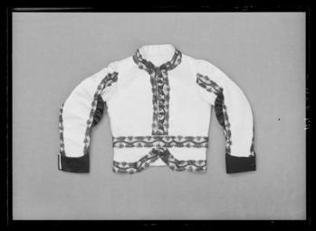 | Keywords: Jacka till Serafimerordensdräkt - Livrustkammaren - 35668.tif Midjekort jacka av vitt siden med isydd lång ärm och knäppning mitt fram i form av 13 svarta välvda räfflade knappar överspunna med svart silke Jackan kantad med 60 mm bred genombruten svart spets Ryggstycket skuret med figursömmar samt ryggsöm Denna och de övriga sömmarna belagda med svart spets Mittbak 70 mm långt sprund två likadana i de övriga sömmarna bak <br/><br/>Ärmsömmarna belagda med svart spets Nedtill slag av svart siden b 70 mm uppdraget i en spets mittfram Samt med sprund l 80 mm med ett knapphål I främre ärmsömmen mitt för armvecket ett halsfäriskt rynkat sidenstycke l 160 mm <br/><br/>Foder av gulvit bomull På vänster sida innerficka Utmed framkanterna mörkblått siden Hela jacka vadderad original caption decade 1840 silk Färg vit d1 - dräkt - yttermaterial material siden - silk Färg svart d5 - dräkt - knappar och spännen material silke - lace Färg svart d4 - Dräkt - passpoaler band kantning uppslag material spets - cotton Färg gulvit d2 - dräkt - foder material bomull size mm 555 fram size mm 550 bak size mm 610 ärm LRK Magnus F F Björnstjerna greve general place of origin original filename LN_B11364_014244 51775 inventory number LRK 15224 35668 CC0 Jacka till Serafimerordensdräkt - Livrustkammaren - 35668-negative tif <gallery caption Different images of same object > File Jacka till Serafimerordensdräkt - Livrustkammaren - 44227 tif </gallery> Ceremonial robes of the Order of the Seraphim Media contributed by LSH dim-with multiple size templates Media contributed by LSH unmatched objKeyword Clothing in Livrustkammaren Media contributed by LSH 2013-10 |