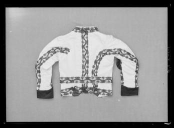 | Keywords: Jacka till Serafimerordensdräkt - Livrustkammaren - 44227.tif Midjekort jacka av vitt siden med isydd lång ärm och knäppning mitt fram i form av 13 svarta välvda räfflade knappar överspunna med svart silke Jackan kantad med 60 mm bred genombruten svart spets Ryggstycket skuret med figursömmar samt ryggsöm Denna och de övriga sömmarna belagda med svart spets Mittbak 70 mm långt sprund två likadana i de övriga sömmarna bak <br/><br/>Ärmsömmarna belagda med svart spets Nedtill slag av svart siden b 70 mm uppdraget i en spets mittfram Samt med sprund l 80 mm med ett knapphål I främre ärmsömmen mitt för armvecket ett halsfäriskt rynkat sidenstycke l 160 mm <br/><br/>Foder av gulvit bomull På vänster sida innerficka Utmed framkanterna mörkblått siden Hela jacka vadderad original caption decade 1840 silk Färg vit d1 - dräkt - yttermaterial material siden - silk Färg svart d5 - dräkt - knappar och spännen material silke - lace Färg svart d4 - Dräkt - passpoaler band kantning uppslag material spets - cotton Färg gulvit d2 - dräkt - foder material bomull size mm 555 fram size mm 550 bak size mm 610 ärm LRK Magnus F F Björnstjerna greve general place of origin original filename LN_B11365_014245 51775 inventory number LRK 15224 44227 CC0 Jacka till Serafimerordensdräkt - Livrustkammaren - 44227-negative tif <gallery caption Different images of same object > File Jacka till Serafimerordensdräkt - Livrustkammaren - 35668 tif </gallery> Ceremonial robes of the Order of the Seraphim Media contributed by LSH dim-with multiple size templates Media contributed by LSH unmatched objKeyword Clothing in Livrustkammaren Media contributed by LSH 2013-10 |