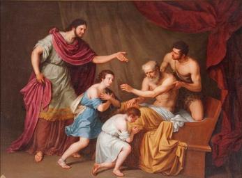 | Keywords: Jacob bendice a Efraín y Manasés (Real Academia de Bellas Artes de San Fernando).jpg La obra representa al patriarca hebreo Jacob bendiciendo a sus nietos Efraín y Manasés que darían nombre a dos de las doce tribus de Israel y eran hijos de José hijo a su vez de Jacob 1832 oil on canvas Size cm 168 127 Institution Real Academia de Bellas Artes de San Fernando http //ceres mcu es/pages/Main accession number 0283 http //ceres mcu es/pages/Main PD-old-100 Paintings of Jacob in Spain Ephraim Manasseh Religious paintings by Antonio María Esquivel 19th-century paintings in the Royal Academy of Fine Arts of San Fernando 1832 paintings in Spain |