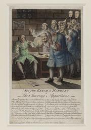 | Keywords: Jacobite broadside - Squire Ketch in Horrors or The Sneering Apparitions.jpg 8 1/2x 9 1/2 coloured portrait of headless rebels led by Simon Fraser of Lovat scaring a man sitting on a bed in chains in a cell With a picture of scaffold and many men hanging from it in back left corner Printed and Sold at E Griffin ™s Map and Print Shop next ye Globe Tavern in Fleet Street Price 6 d Plain Coloured 1 s According to the Oxford Dictionary of National Biography the man is John Thrift d 1752 public executioner and murderer and the cartoon shows 'Thrift in the condemned cell recoiling in terror as his Jacobite victims confront him led by the three lords Lovat Balmerino and Kilmarnock their grinning severed heads in their hands ' Others depicted may include Charles Radcliffe and some of the nine members of the Manchester Regiment including Francis Towneley and George Fletcher who were ˜hung drawn and quartered ™ by Thrift at Kennington on Wednesday July 30th 1746 Size cm 24 24 exhibition history Institution National Library of Scotland Prints and broadsides object history object type PD-old-70-1923 place of creation Blaikie SNPG 75241538 Jacobite broadside - Squire Ketch in Horrors or The Sneering Apparitions Uploaded with GWToolset Jacobite broadside - Squire Ketch in Horrors or The Sneering Apparitions http //deriv nls uk/56YK98Q/7524/75241540 2 jpg Images uploaded as part of NLS-WMUK collaboration Jacobite broadsides |