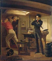 | Keywords: Jacobus Schoemaker Doyer Jan van Speijk 1834.jpg Artwork Creator Jacobus Schoemaker Doyer en Jan van Speijk considers lighting the fuse of the powder barrel 5 February 1834 nl Jan van Speijk overlegt of hij de lont in het kruit zal steken 5 februari 1831 1834 Oil on canvas cm 89 75 Rijksmuseum Amsterdam Amsterdam Provenance 30 June 1885 lent to the Rijksmuseum Amsterdam by the city of Amsterdam https //www rijksmuseum nl/collectie/SK-C-221 www rijksmuseum nl Inv nr SK-C-221 Other versions PD-old-100 Jacobus Schoemaker Doyer 1834 Dutch 19th-century paintings in the Rijksmuseum Amsterdam Schoemaker Doyer Jacobus Jan van Speijk |