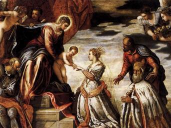 | Keywords: Jacopo Tintoretto - Mystic Marriage of St Catherine (detail) - WGA22623.jpg Artwork Creator Jacopo Tintoretto Mystic Marriage of St Catherine 1576 Oil on canvas Institution Palazzo Ducale Venice object history credit line accession number WGA link 22623 http //www wga hu/art/t/tintoret/4a/2colleg1 jpg http //www wga hu/html/t/tintoret/4a/2colleg1 html PD-old-100 painting religious Italian 1551-1600 Paintings by Tintoretto in Doge's Palace 1576 paintings WGA form painting WGA type religious WGA School Italian WGA time period 1551-1600 Interior of the Doge's Palace Venice - Sala del Collegio |