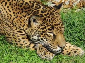 Keywords: jaguar big cat carnivore feline resting portrait fur hunter mammal predator spotted looking wildlife nature panthera onca enclosure zoo