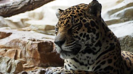 | Keywords: jaguar cat animal big carnivore feline hunter leopard mammal nature panther predator wild wildlife jungle strong aggression zoo colorful face forward front fur outdoors portrait spotted staring powerful beast power daunting eye looking dangerous calm alert |