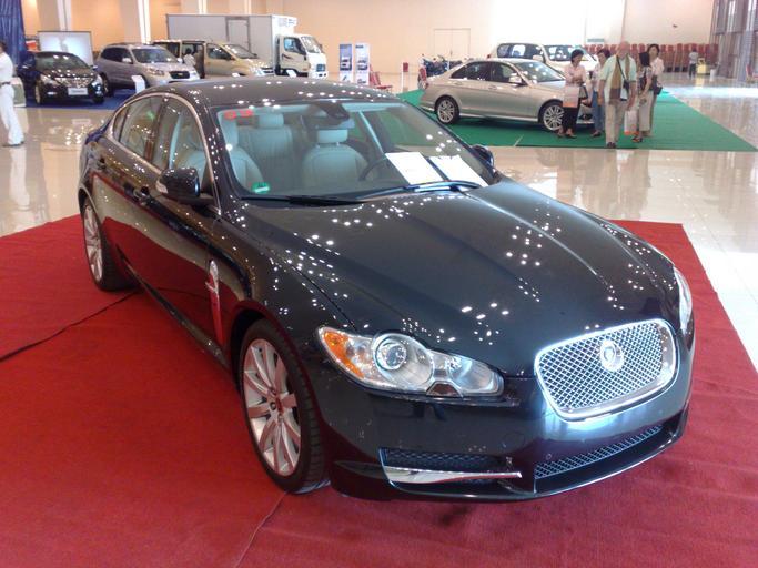 Keywords: Jaguar xf 02042011777.jpg en Black Jaguar XF at a motor show in Koh Pich Phnom Penh Cambodia in 2 April 2011 2011-04-02 own Dtfman cc-zero Uploaded with UploadWizard Jaguar XF X250 Saloon