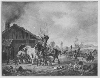 Keywords: Jahrhundertausstellung 1906 KatNr. 0231.jpg Artwork Creator Heinrich Bürkel Pferde vor einer Dorfschmiede Oil Canvas cm 43 54 Kunsthalle Hamburg lt Quelle self scanned from own book Vorstand der Deutschen Jahrhundertausstellung Herausgeber žKatalog zur Ausstellung deutscher Kunst aus der Zeit von 1775 “1875 in der Königlichen Nationalgalerie Berlin Verlag F Bruckmann AG München 1906 2 Bände 1826 PD-old-70-1923 Other versions Heinrich Bürkel Jahrhundertausstellung deutscher Kunst 1906 ImageNote 1 14 14 1068 831 1105 864 2 Schmutzigbraune und grünliche Töne Vereinzelte rotbraune weiße und graublaue Stellen “ Bez unten links braun H Bürkel 1826 ImageNoteEnd 1