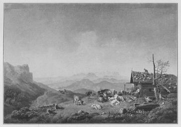 | Keywords: Jahrhundertausstellung 1906 KatNr. 0232.jpg Artwork Creator Heinrich Bürkel Sonntagmorgen auf der Alp Oil Canvas cm 53 82 Kunsthalle Hamburg lt Quelle self scanned from own book Vorstand der Deutschen Jahrhundertausstellung Herausgeber žKatalog zur Ausstellung deutscher Kunst aus der Zeit von 1775 “1875 in der Königlichen Nationalgalerie Berlin Verlag F Bruckmann AG München 1906 2 Bände 1842 PD-old-70-1923 Other versions Heinrich Bürkel Jahrhundertausstellung deutscher Kunst 1906 ImageNote 1 25 18 1354 951 1401 990 2 Vordergrund gelbbraune mit Grün gemischte Wiese Das Vieh und die Hütte braun Graues schwach rosa belichtetes Dach In der Kleidung des Mädchens kupferrosa wie in dem Kupferkessel grau und grün Das Panorama schwach bläuliches Grau Der Himmel gelbliche Wolken auch hellblau “ Bez unten links braun H Bürkel 1842 ImageNoteEnd 1 |