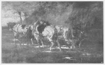 | Keywords: Jahrhundertausstellung 1906 KatNr. 0391.jpg Otto von Faber du Faur Schwere Arbeit Technique Oil Canvas cm 80 125 Frau Marie v Faber du Faur München lt Quelle self scanned from own book Vorstand der Deutschen Jahrhundertausstellung Herausgeber žKatalog zur Ausstellung deutscher Kunst aus der Zeit von 1775 “1875 in der Königlichen Nationalgalerie Berlin Verlag F Bruckmann AG München 1906 2 Bände 1880 PD-old-70-1923 Other versions Otto von Faber du Faur Jahrhundertausstellung deutscher Kunst 1906 ImageNote 1 22 22 1896 1156 1942 1207 2 Das Handpferd in kupferrötlichem mit Braun versetzten Ton Die beiden anderen schmutziggelb und blaugrau auf weißem Grund Der Rest des Bildes braun Im Hintergrund links schmutziges Hellblau Dicker zäher Auftrag “ Bez unten rechts O von Faber du Faur “ 1880 ImageNoteEnd 1 |