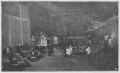 | Keywords: Jahrhundertausstellung 1906 KatNr. 0692b.jpg Oil Canvas cm 36 60 Ernst Hausmann Berlin lt Quelle self scanned from own book Vorstand der Deutschen Jahrhundertausstellung Herausgeber žKatalog zur Ausstellung deutscher Kunst aus der Zeit von 1775 “1875 in der Königlichen Nationalgalerie Berlin Verlag F Bruckmann AG München 1906 2 Bände 1854 PD-old-70-1923 Other versions ImageNote 1 15 18 1294 770 1324 805 2 Blattgrüner Fußboden mit dunkelgrünen Schatten Die Wand links gebräuntes Ockergelb Thronhimmel und Mittelwand dunkelbraune Töne mit Braunrot durchsetzt Auf dem kaum angedeuteten Altar der rechten Wand der gelbe Rauch brennender Kerzen Das Rot fast purpurn in den Stufen und einzelnen Gewändern wird in anderen rotbraun Die Kutten der am Boden Sitzenden meistens dunkelbraun Die drei auf den Stufen knieenden Männer schwarz “ Bez unten rechts F K Hausmann 1854 “ ImageNoteEnd 1 Friedrich Karl Hausmann Jahrhundertausstellung deutscher Kunst 1906 |