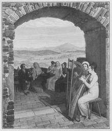 | Keywords: Jahrhundertausstellung 1906 KatNr. 0759.jpg Artwork Creator Johann Erdmann Hummel Grotte bei Teplitz Oil Canvas cm 58 49 Kgl Schloß Wiesbaden lt Quelle self scanned from own book Vorstand der Deutschen Jahrhundertausstellung Herausgeber žKatalog zur Ausstellung deutscher Kunst aus der Zeit von 1775 “1875 in der Königlichen Nationalgalerie Berlin Verlag F Bruckmann AG München 1906 2 Bände PD-old-70-1923 Other versions Johann Erdmann Hummel Jahrhundertausstellung deutscher Kunst 1906 Harps in art ImageNote 1 18 16 883 1042 921 1076 2 Die ziegelrosa braunen und grauen Töne des gemauerten Bogens wiederholen sich gemildert in den Steinen des Bodens Bräunliche und rosa Fleischfarben Kostüme braun rosa grau grün etc Das helle Milchkaffeebraun der ersten Harfenspielerin kommt in den hellen Stellen der Landschaft wieder in der sonst graublaue Töne vorherrschen ImageNoteEnd 1 |