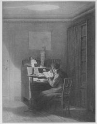 | Keywords: Jahrhundertausstellung 1906 KatNr. 0826.jpg Artwork Creator Georg Friedrich Kersting Lesender Mann bei Kerzenlicht Oil Canvas cm 46 5 36 5 Großherzogl Schloß Weimar lt Quelle self scanned from own book Vorstand der Deutschen Jahrhundertausstellung Herausgeber žKatalog zur Ausstellung deutscher Kunst aus der Zeit von 1775 “1875 in der Königlichen Nationalgalerie Berlin Verlag F Bruckmann AG München 1906 2 Bände 1812 PD-old-100-1923 Other versions Paintings by Georg Friedrich Kersting Jahrhundertausstellung deutscher Kunst 1906 ImageNote 1 21 18 1188 1524 1230 1566 2 Die Wand in einem schwachen Porphyrrot Tür und Plafond leicht gebräuntes Grau Das Grün des Lampenschirmes kommt beschattet in dem Fries an der Decke und im Vorhang wieder Der Leser im blaugrauen Schlafrock mit dunklen Schatten sein Gesicht rötlich beleuchtet Der Sekretär in hellem Rotbraun Fußboden grau mit Gelb versetzt “ Bez links unten in der Tür G Kersting 1812 ImageNoteEnd 1 |