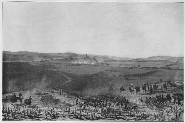 | Keywords: Jahrhundertausstellung 1906 KatNr. 0865.jpg Artwork Creator Wilhelm von Kobell Treffen bei Bar sur Aube 1814 Auf der Rückseite befindet sich folgende Inschrift žBar sur Aube Dies Gemälde zeigt das bayerische Fußvolk wie es auf seines Feldmarschalls Grafen Wredens Befehl in dem Treffen von bar an der Aube den 27 Hornung 1814 die Bewegung ausführet die Franzosen vornen und in der Seite sie überflügelnd anzugreifen Oil Canvas cm 200 302 Kgl Armeemuseum München lt Quelle self scanned from own book Vorstand der Deutschen Jahrhundertausstellung Herausgeber žKatalog zur Ausstellung deutscher Kunst aus der Zeit von 1775 “1875 in der Königlichen Nationalgalerie Berlin Verlag F Bruckmann AG München 1906 2 Bände PD-old-70-1923 Other versions Wilhelm von Kobell Jahrhundertausstellung deutscher Kunst 1906 ImageNote 1 28 22 2478 1637 2522 1678 2 Vordergrund hellgelbgrauer Boden mit ockerbraunen und grauen Modellierungen und dunkelrotbraunen zuweilen rostfarbenen Blättern Auf dem gelbgrauen Boden das durchsichtige bläuliche Weiß der Hosen und das Graublau der Röcke mit den roten Kragen Großer braunbeschatteter Mittelplan in den helleren Stellen mit schwachgrünem Schimmer Bläulichgraue Pulverwolken Die Stadt in kühlen gelblichgrauen blaugrauen und rotbraunen Tönen Blaugraue Höhen Der Himmel beginnt hell orangegelb und geht in Hellblau über “ Auf der Rückseite befindet sich folgende Inschrift žBar sur Aube Dies Gemälde zeigt das bayerische Fußvolk wie es auf seines Feldmarschalls Grafen Wredens Befehl in dem Treffen von bar an der Aube den 27 Hornung 1814 die Bewegung ausführet die Franzosen vornen und in der Seite sie überflügelnd anzugreifen ImageNoteEnd 1 |