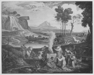| Keywords: Jahrhundertausstellung 1906 KatNr. 0882.jpg Artwork Creator Joseph Anton Koch Opfer Noahs Die Figuren angeblich von Cornelius Oil Canvas cm 114 138 Städtisches Museum Leipzig lt Quelle self scanned from own book Vorstand der Deutschen Jahrhundertausstellung Herausgeber žKatalog zur Ausstellung deutscher Kunst aus der Zeit von 1775 “1875 in der Königlichen Nationalgalerie Berlin Verlag F Bruckmann AG München 1906 2 Bände 1813 PD-old-100-1923 Other versions Joseph Anton Koch Jahrhundertausstellung deutscher Kunst 1906 ImageNote 1 27 27 1773 1419 1824 1470 2 Der braune Vordergrund mit den weißblauen rosagrünen und orangebraunen Tönen der Kostüme Rötliche Fleischfarbe Weißgraue und braune Tiere Die graue Arche auf grauem Felsen Die Berge im Hintergrund graublau Der blaue Himmel zum größten Teil mit hellen gelbgrauen und links grauen und graurosa Wolken bedeckt “ Bez unten links schwarz Giuseppe Koch Tiroles fece 1813 “ Die Figuren angeblich von Cornelius ImageNoteEnd 1 |