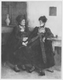 | Keywords: Jahrhundertausstellung 1906 KatNr. 0991.jpg Artwork Creator Wilhelm Leibl Dachauerinnen Oil Canvas cm 140 113 Nationalgalerie Berlin lt Quelle Vorstand der Deutschen Jahrhundertausstellung Herausgeber žKatalog zur Ausstellung deutscher Kunst aus der Zeit von 1775 “1875 in der Königlichen Nationalgalerie Berlin Verlag F Bruckmann AG München 1906 2 Bände ; self scanned from own book vor 1875 PD-old-70-1923 Other versions Paintings by Wilhelm Leibl Jahrhundertausstellung deutscher Kunst 1906 Wilhelm Leibl in Jahrhundertausstellung deutscher Kunst 1906 ImageNote 1 35 39 1754 2236 1839 2317 2 Beide Frauen in schwarzen Kleidern mit Bändern aus pompejanischem Rot Die Linkssitzende trägt im Brustlatz Schnüre aus sehr reichem Gelb Die andere Schnüre aus Blauweiß In den Schnüren ist der breite Auftrag am stärksten Braunrosa Fleisch das durch die schwarzen Stirnschleier durchscheint Beide Frauen tragen blauschwarze Strümpfe mit hellgrauen gewirkten Mustern Der Fußboden graugelb mit schwarzem Schatten Der Tisch warmes rötliches Gelb Das Fenster rotbraun Die Wand in stark geblautem Weiß “ Bez unten rechts W Leibl “ Vor 1875 ImageNoteEnd 1 |