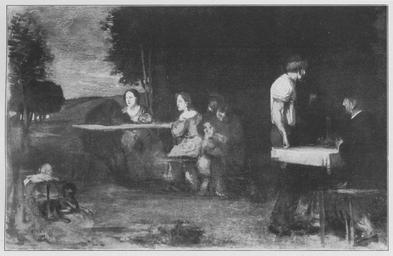 | Keywords: Jahrhundertausstellung 1906 KatNr. 1110.jpg Artwork Creator Hans von Marées Römische Vigna Oil Canvas cm 80 133 Frau Generalmusikdirektor Mary Levi Partenkirchen lt Quelle Vorstand der Deutschen Jahrhundertausstellung Herausgeber žKatalog zur Ausstellung deutscher Kunst aus der Zeit von 1775 “1875 in der Königlichen Nationalgalerie Berlin Verlag F Bruckmann AG München 1906 2 Bände ; self scanned from own book 1870 “71 PD-old-70-1923 Other versions Paintings by Hans von Marées Jahrhundertausstellung deutscher Kunst 1906 Hans von Marées in Jahrhundertausstellung deutscher Kunst 1906 ImageNote 1 27 23 1778 1143 1826 1191 2 Die Gesichter der Männer in einem starken Erdbeerrot das sich in dem am weitesten Zurücksitzenden in dunklen Schatten hüllt Der Wirt in bläulichweißem Hemd trägt auf dem dunkelgrauen Haar ein purpurrotes leuchtendes Käppi Dasselbe Rot in dem Rock der Hauptfigur der Frauengruppe violettrosa Taille Ein sehr verdünnter Ton dieses Violettrosa gibt die Farbe der helleuchtenden Gesichter der beiden belichteten Frauen von denen die zweite in Mausgrau gekleidet ist Die anderen in braunem Schatten Der Himmel Preußischblau mit sehr wenig weißen Wölkchen Sonst graue und indifferente dunkle Töne Das Walddickicht hinter den Gruppen fast pechschwarz “ 1870 “71 ImageNoteEnd 1 |
