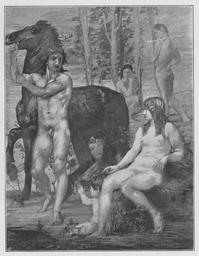 | Keywords: Jahrhundertausstellung 1906 KatNr. 1126.jpg Artwork Creator Hans von Marées Raub der Helena Oil Wood cm 188 145 Galerie Schleißheim lt Quelle Vorstand der Deutschen Jahrhundertausstellung Herausgeber žKatalog zur Ausstellung deutscher Kunst aus der Zeit von 1775 “1875 in der Königlichen Nationalgalerie Berlin Verlag F Bruckmann AG München 1906 2 Bände ; self scanned from own book nach 1875 PD-old-70-1923 Other versions Paintings by Hans von Marées Jahrhundertausstellung deutscher Kunst 1906 Hans von Marées in Jahrhundertausstellung deutscher Kunst 1906 ImageNote 1 19 29 1076 1384 1122 1444 2 Ohne jedes Relief Die Körper der Helena und des Paris sind durch dünne Pinselstriche von einem helleren Ton der Grundfarbe belichtet und zwar Helena grünlichgrau mit bräunlichen Konturen Paris rötlichgelb Das Pferd braunrot bis schwarz Das Kind neben Helena trägt das hellste Gelb des Bildes die beiden hinteren Gestalten mattes rötliches Braun In der Landschaft wechselt Blau mit Dunkelgrau “ Nach 1875 ImageNoteEnd 1 |
