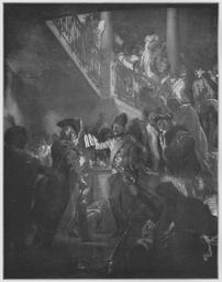| Keywords: Jahrhundertausstellung 1906 KatNr. 1168.jpg Artwork Creator Adolph von Menzel žBon soir messieurs Friedrich der Große überrascht die Österreicher im Schlosse von Lissa Oil Canvas cm 246 190 Kunsthalle Hamburg lt Quelle unvollendet Vorstand der Deutschen Jahrhundertausstellung Herausgeber žKatalog zur Ausstellung deutscher Kunst aus der Zeit von 1775 “1875 in der Königlichen Nationalgalerie Berlin Verlag F Bruckmann AG München 1906 2 Bände ; self scanned from own book 1858 PD-old-70-1923 Other versions Adolph von Menzel Jahrhundertausstellung deutscher Kunst 1906 Adolph von Menzel in Jahrhundertausstellung deutscher Kunst 1906 ImageNote 1 23 23 1777 2271 1823 2310 2 Vorwiegend graue und rötliche Töne Oberhalb der grauen Treppe ein starkes rosa Licht das die Säulen gelb färbt und das rötliche Blond der Gestalten auf der Treppe bestimmt In der Gruppe am Fuß der Treppe grellere Töne mit starken Schatten Der Soldat der die Laterne hält grau mit lebhaft gelben Reflexen die sich in den beiden folgenden Offizieren abschwächen und mit den Tönen der Gruppe auf der Treppe zusammenhängen Friedrich in dunkelrotbraunem Rock mit feuerroter Schärpe Der rechts sitzende vom Feuer beschienene Slowake in blauviolettem Mantel Der Offizier der Friedrich folgt ganz im Schatten Sonst alle Gesichter in gelbrötlichen Tönen “ Bez unten rechts rot Ad Menzel 1858 v Tschudi Menzel-Werk Nr 117 ImageNoteEnd 1 |