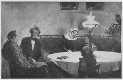 | Keywords: Jahrhundertausstellung 1906 KatNr. 1169.jpg Artwork Creator Adolph von Menzel Familiengruppe im Zimmer bei Lampenlicht Oil Canvas cm 24 38 Nationalgalerie Berlin lt Quelle Vorstand der Deutschen Jahrhundertausstellung Herausgeber žKatalog zur Ausstellung deutscher Kunst aus der Zeit von 1775 “1875 in der Königlichen Nationalgalerie Berlin Verlag F Bruckmann AG München 1906 2 Bände ; self scanned from own book um 1858 PD-old-70-1923 Other versions Paintings by Adolph von Menzel in the Alte Nationalgalerie Jahrhundertausstellung deutscher Kunst 1906 Adolph von Menzel in Jahrhundertausstellung deutscher Kunst 1906 ImageNote 1 14 18 1774 1140 1810 1181 2 Schmutziggrüngraue Wand purpurrotes Sofa weißes Tischtuch; in den Schatten kehrt die Farbe der Wand wieder Der erste Herr links in rotbraunem Rock Dieselbe Farbe in den Köpfen Die erste Dame auf dem Sofa in dunkelgrünem Kleid weißer Haube Die anderen Personen in dunklen Farben “ Um 1858 v Tschudi Menzel-Werk Nr 59 ImageNoteEnd 1 |