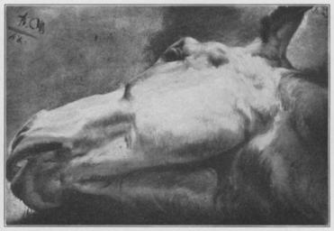 | Keywords: Jahrhundertausstellung 1906 KatNr. 1175.jpg Artwork Creator Adolph von Menzel Pferdekopf Oil Canvas cm 38 53 Geheimrat Ernst Seeger Berlin lt Quelle Vorstand der Deutschen Jahrhundertausstellung Herausgeber žKatalog zur Ausstellung deutscher Kunst aus der Zeit von 1775 “1875 in der Königlichen Nationalgalerie Berlin Verlag F Bruckmann AG München 1906 2 Bände ; self scanned from own book 1848 PD-old-70-1923 Other versions Adolph von Menzel Jahrhundertausstellung deutscher Kunst 1906 Adolph von Menzel in Jahrhundertausstellung deutscher Kunst 1906 ImageNote 1 13 15 998 677 1020 704 2 Bräunliches feines Craquelé als Grund der an vielen Stellen durch das Grauweiß des Pferdekopfes hervorkommt Das Grau wird am Auge und am Maul zu fast schwarzem Graublau Die Pinselstriche sind am kürzesten und vollsten in der hellsten Stelle wo das Grau zu Weiß wird “ Bez oben links braun A M /1846 Unten rechts eingekratzt 15 April 1848 v Tschudi Menzel-Werk Nr 43 ImageNoteEnd 1 |