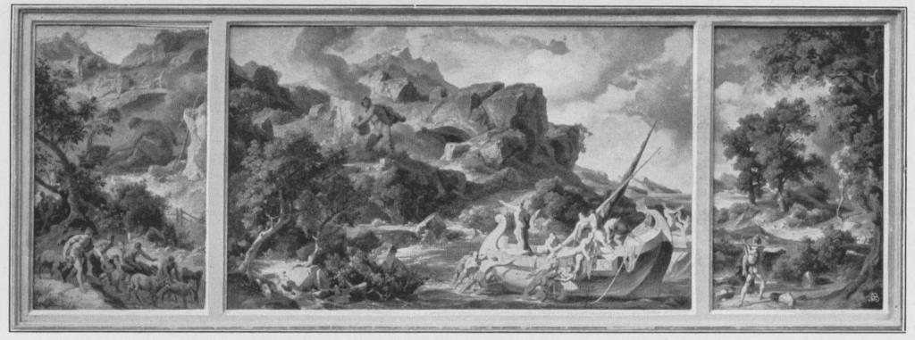 | Keywords: Jahrhundertausstellung 1906 KatNr. 1345.jpg  Artwork Creator Friedrich Preller der Ältere Farbenskizzen zur Odyssee Oil Canvas mittlere cm 40 67 seitliche cm 40 24 Frau von Eichel-Streiber Eisenach lt Quelle Vorstand der Deutschen Jahrhundertausstellung Herausgeber žKatalog zur Ausstellung deutscher Kunst aus der Zeit von 1775 “1875 in der Königlichen Nationalgalerie Berlin Verlag F Bruckmann AG München 1906 2 Bände ; self scanned from own book 1864/65 PD-old-70-1923 Other versions Friedrich Preller der Ältere Jahrhundertausstellung deutscher Kunst 1906 ImageNote 1 20 10 1928 714 1977 736 2 Das Fleisch in mehr oder weniger gebräuntem Rosa Die Kostüme vorwiegend rosa zuweilen mattgelb und mattblau Die Felsen oft im selben Rosa auch in grauen und graubraunen Tönen Ebenso die Architektur Die Bäume grünlichgrau und braungrün Das Wasser türkisblau oder grünlichblau Der Himmel fast ausnahmslos türkisblau mit weißgrauen und rosabraunen Wolken “ Die Bezeichnung gewöhnlich unten links Monogramm F P zwischen 18 und 65 die Nrn 1345 “47 und 1350 datiert 1864 ImageNoteEnd 1  |