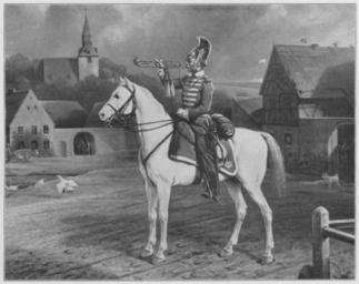 | Keywords: Jahrhundertausstellung 1906 KatNr. 1388r.jpg Artwork Creator Louis Ferdinand von Rayski Trompeter Oil Canvas cm 106 139 Graf Adolf Einsiedel-Milkel Milkel Ober- Lausitz lt Quelle Vorstand der Deutschen Jahrhundertausstellung Herausgeber žKatalog zur Ausstellung deutscher Kunst aus der Zeit von 1775 “1875 in der Königlichen Nationalgalerie Berlin Verlag F Bruckmann AG München 1906 2 Bände ; self scanned from own book PD-old-70-1923 Other versions Louis Ferdinand von Rayski Jahrhundertausstellung deutscher Kunst 1906 ImageNote 1 18 18 1642 1300 1678 1333 2 Der Schimmel weiß mit grauen Schatten Blaugraue Uniformen mit weißem Besatz Graue Morgenatmosphäre Platz und Häuser in grauen und braunrötlichen Tönen Die graue Kirche ist von grauem Grün umgeben Gelbgraue Regenwolken “ Bez auf der Rückseite ImageNoteEnd 1 |