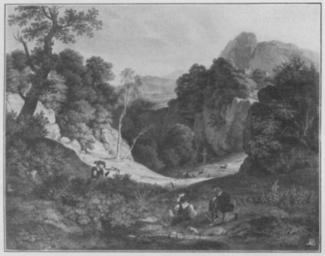 | Keywords: Jahrhundertausstellung 1906 KatNr. 1398.jpg Artwork Creator Heinrich Reinhold Landschaft mit Bogenschützen Oil Canvas cm 31 39 Bernt Grönvold Berlin lt Quelle Vorstand der Deutschen Jahrhundertausstellung Herausgeber žKatalog zur Ausstellung deutscher Kunst aus der Zeit von 1775 “1875 in der Königlichen Nationalgalerie Berlin Verlag F Bruckmann AG München 1906 2 Bände ; self scanned from own book 1817 PD-old-70-1923 Other versions Heinrich Reinhold Jahrhundertausstellung deutscher Kunst 1906 ImageNote 1 12 11 900 708 926 730 2 Die Landschaft im wesentlichen in braungrünen Tönen Die beschatteten Felsen und Berge des Mittelplanes und Hintergrundes violettgrau und bläulichgrau Der belichtete Felsen links in hellbraunen und grauen Tönen Der hellblaue Himmel mit weißgeränderten violettgrauen Wolken Die Kostüme der Jäger in Rot Gelb Braun Schwarz Blau “ Bez unten rechts schwarz Heinrich Reinhold pinx 1817 ImageNoteEnd 1 |