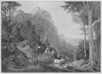 | Keywords: Jahrhundertausstellung 1906 KatNr. 1422.jpg Artwork Creator Ludwig Richter Tal bei Amalfi Oil Canvas cm 98 136 Städtisches Museum Leipzig lt Quelle Vorstand der Deutschen Jahrhundertausstellung Herausgeber žKatalog zur Ausstellung deutscher Kunst aus der Zeit von 1775 “1875 in der Königlichen Nationalgalerie Berlin Verlag F Bruckmann AG München 1906 2 Bände ; self scanned from own book 1826 PD-old-70-1923 Other versions Paintings by Adrian Ludwig Richter in the Museum der bildenden Künste Jahrhundertausstellung deutscher Kunst 1906 ImageNote 1 11 18 1775 1276 1809 1317 2 Violettgraue und braune mit hellem Havana belichtete Felsen Die Felsen und Baumstämme der rechten Seite etwa mausgrau Braunes und braungrünes Blattwerk In den Kostümen gedämpftes Rot Blau Weißgrau etc Graublaues Meer Der Himmel beginnt mit hellstem Orange und geht in reines Hellolive über; gelbweiße und grauweiße Wolken “ Bez unten rechts schwarz L Richter Rom 1826 ImageNoteEnd 1 |