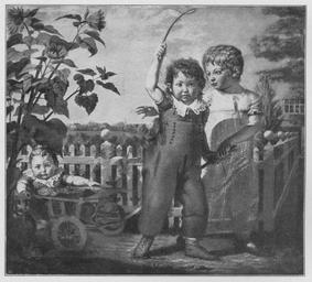| Keywords: Jahrhundertausstellung 1906 KatNr. 1466.jpg Artwork Creator Philipp Otto Runge Die Hülsenbeckschen Kinder Oil Canvas cm 130 5 140 5 Kunsthalle Hamburg lt Quelle Vorstand der Deutschen Jahrhundertausstellung Herausgeber žKatalog zur Ausstellung deutscher Kunst aus der Zeit von 1775 “1875 in der Königlichen Nationalgalerie Berlin Verlag F Bruckmann AG München 1906 2 Bände ; self scanned from own book 1805 PD-old-100-1923 Other versions Philipp Otto Runge Jahrhundertausstellung deutscher Kunst 1906 Paintings of children ImageNote 1 24 20 1413 1282 1471 1333 2 Das Fleisch im erhöhten Ton des Blonds der Haare mit Rosa Dasselbe Blond bildet die helleren Schattenpartien des weißgrauen Zauns und der Häuser Der Junge in gurkengrünem Anzug und gelben Schuhen Das Mädchen in weißem Kleid mit grauen Tiefen und blonden Schatten Das Kleinste in rotem Kleid “ der vertiefte Ton des Fleischrosas “ mit weißen Sternchen Das Rot kommt in den Schuhen des Mädchens aber ohne Weiß wieder Das Hellbraun des Wagens kommt im Boden wieder Das Grün der Vegetation in grauen und hellbraunen Spielarten Die Dächer der Häuser in gedämpftem Rosa Ein Reflex des Rosa in dem grauen Himmel “ 1805 ImageNoteEnd 1 |