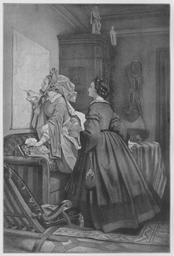 | Keywords: Jahrhundertausstellung 1906 KatNr. 1614.jpg Artwork Creator Moritz von Schwind Im Hause des Künstlers Der Besuch Oil Canvas cm 71 51 Neue Pinakothek München lt Quelle Vorstand der Deutschen Jahrhundertausstellung Herausgeber žKatalog zur Ausstellung deutscher Kunst aus der Zeit von 1775 “1875 in der Königlichen Nationalgalerie Berlin Verlag F Bruckmann AG München 1906 2 Bände ; self scanned from own book 1860 PD-old-70-1923 Other versions Moritz von Schwind Jahrhundertausstellung deutscher Kunst 1906 ImageNote 1 24 16 1583 2386 1644 2422 2 Hellgrüne Wände hellbraunes Parkett mit dunkelbraunen Einlagen Braune Möbel Das Sofa mit mattem erdbeerroten Bezug Die Tischdecke in matten türkischen Farben Das Kleid der ersten Dame in gedämpftem Blau mit Schwarz das der anderen die die weiße Landkarte studiert in einem an Rohseide erinnernden Hellbraun Das Futter des Ärmels und die Hutbänder erdbeerrosa die Schärpe weißliches Violett “ 1860 ImageNoteEnd 1 |