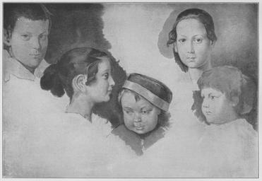 | Keywords: Jahrhundertausstellung 1906 KatNr. 1615.jpg Artwork Creator Moritz von Schwind Köpfe der Kinder von Jul Schnorr von Carolsfeld Oil Canvas cm 63 87 Dr L Schnorr von Carolsfeld Dresden lt Quelle Vorstand der Deutschen Jahrhundertausstellung Herausgeber žKatalog zur Ausstellung deutscher Kunst aus der Zeit von 1775 “1875 in der Königlichen Nationalgalerie Berlin Verlag F Bruckmann AG München 1906 2 Bände ; self scanned from own book 1839 “40 PD-old-70-1923 Other versions Moritz von Schwind Jahrhundertausstellung deutscher Kunst 1906 Julius Schnorr von Carolsfeld ImageNote 1 16 14 1773 1218 1809 1250 2 Die Köpfe fast ausschließlich in einem bleiernen Grau modelliert In dem Kopf des Mädchenprofils wenig Rosabraun schwarzes Haar In dem Gesicht des Jungen mit der grünen Mütze Spuren von Rosa Das Haar mit leichtem Braun der Anfang des Rocks mit Ziegelrosa angedeutet In dem Mädchengesicht rechts oben überwiegt Rosa Augen und Haar dunkelbraun Der Rest der Leinwand ist unbedeckt “ 1839 “40 ImageNoteEnd 1 |