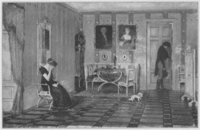 | Keywords: Jahrhundertausstellung 1906 KatNr. 1636b.jpg Artwork Creator Franz Skarbina Sonnenuntergang Interieur Oil Canvas cm 83 133 Professor Franz Skarbina Berlin lt Quelle Vorstand der Deutschen Jahrhundertausstellung Herausgeber žKatalog zur Ausstellung deutscher Kunst aus der Zeit von 1775 “1875 in der Königlichen Nationalgalerie Berlin Verlag F Bruckmann AG München 1906 2 Bände ; self scanned from own book 1876 PD-old-70-1923 Other versions Franz Skarbina Jahrhundertausstellung deutscher Kunst 1906 ImageNote 1 16 11 1741 1119 1774 1150 2 Gelbgrüne Wände mit grauen Streifen und rosa und grauen Girlanden dekoriert Weißgraue mit grüngestreiftem und mit roten Blumen geschmücktem Stoff bezogene Möbel Mahagonibrauner Fußboden mit gelblichen Reflexen Der Herr in dunkelblauem Frack und grauen Hosen die Dame in Schwarz “ Bez unten rechts orangerot F Skarbina “ 1876 ImageNoteEnd 1 |