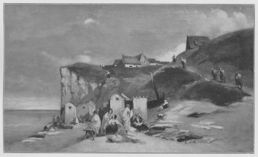 Keywords: Jahrhundertausstellung 1906 KatNr. 1691.jpg Artwork Creator Carl Spitzweg Frauenbad in Dieppe Oil Canvas cm 37 67 Nationalgalerie Berlin lt Quelle Vorstand der Deutschen Jahrhundertausstellung Herausgeber žKatalog zur Ausstellung deutscher Kunst aus der Zeit von 1775 “1875 in der Königlichen Nationalgalerie Berlin Verlag F Bruckmann AG München 1906 2 Bände ; self scanned from own book um 1851 PD-old-70-1923 Other versions Carl Spitzweg in Jahrhundertausstellung deutscher Kunst 1906 Jahrhundertausstellung deutscher Kunst 1906 Dieppe in art ImageNote 1 19 15 1651 997 1691 1033 2 Gelbgrauer Strand dessen Ton sich in dem Weiß der Bademäntel der drei Frauen wiederfindet Auf dem Boden deuten skizzenhafte Pinselstriche zum Trocknen gelegte vielfarbige Badekleider an zumal Weißgelb bezw Ocker Blaurot und Rosa Das Rosa ist identisch mit dem Fleisch der Nackten; havanabraune Konturen Die Anhöhe braun und grün Die Frauen auf dem grauen Weg in Grau und Braun gekleidet Einzelheiten in Siegelrot Die hellen Häuser mit grauen und braunen Dächern Unten geht das Gelbgrau des Strandes fast ohne Unterbrechung in das Meer über das sich nach einem à bergang durch leichtgrünliche Töne zu Graublau abtönt Dieses ist etwas dunkler als der zum großen Teil von grauen hier und da gelblichbeleuchteten Wolken bedeckte Himmel “ Auf dem Holz des Blendrahmens findet sich in fremder alter Schrift Frauenbad in Dieppe nach Isabey von C Spitzweg “ Ein Original Isabeys dieser Art scheint nicht zu existieren “ Um 1851 ImageNoteEnd 1