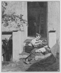 | Keywords: Jahrhundertausstellung 1906 KatNr. 1892.jpg Artwork Creator Ferdinand Georg Waldmüller Vor der Tür Oil Canvas cm 56 40 Städtischer Besitz Kassel lt Quelle Vorstand der Deutschen Jahrhundertausstellung Herausgeber žKatalog zur Ausstellung deutscher Kunst aus der Zeit von 1775 “1875 in der Königlichen Nationalgalerie Berlin Verlag F Bruckmann AG München 1906 2 Bände ; self scanned from own book 1862 PD-old-70-1923 Other versions Ferdinand Georg Waldmüller in Jahrhundertausstellung deutscher Kunst 1906 Jahrhundertausstellung deutscher Kunst 1906 ImageNote 1 11 8 795 955 823 978 2 Lehmgelbe mit Orange durchsetzte Erde deren Ton in den Treppenstufen vorkommt und sehr verdünnt in dem gelbweiß grauen Haus mitwirkt Der Schatten in der braungefaßten Türöffnung schwarzgrau Die Mädchen in rosa weißen und namentlich blauen Tönen Die Kränze in Kornblumenblau “ Bez unten rechts neben dem Haus braun Waldmüller 1862 ImageNoteEnd 1 |
