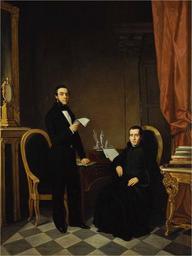 | Keywords: Jaime Balmes y Juan Donoso Cortés (Real Academia de la Historia).jpg Retrato conjunto del filósofo y teólogo Jaime Balmes 1810-1848 y del filósofo y politico Juan Donoso Cortés 1809-1853 Siglo XIX oil canvas Size cm 127 162 Institution Real Academia de la Historia http //www madrid org/archivos/images/ACTIVIDADES/DONOSO/Catalogo_JDC_web pdf object history exhibition history credit line accession number http //www madrid org/archivos/images/ACTIVIDADES/DONOSO/Catalogo_JDC_web pdf PD-old-100 Jaime Balmes Juan Donoso Cortés Portrait paintings in the Royal Academy of History Luis Brocheton y Muguruza Uploaded with UploadWizard |