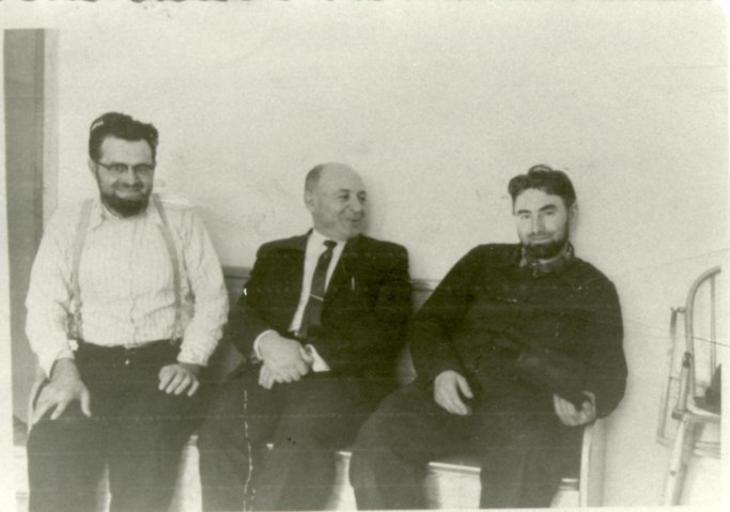 | Keywords: jake kleinsasser jakekleinsasser fred kleinsasser fredkleinsasser tony waldner hutterites tonywaldnerhutterites groupshot people monochrome Caption: Jake Kleinsasser, Elder, with brother Fred (middle person unknown). Citation: Tony Waldner Photograph Collection, 1910-1986. HM4-317 Box 1 Folder 20. Mennonite Church USA Archives - Goshen. Goshen, Indiana. Caption: Jake Kleinsasser, Elder, with brother Fred (middle person unknown). Citation: Tony Waldner Photograph Collection, 1910-1986. HM4-317 Box 1 Folder 20. Mennonite Church USA Archives - Goshen. Goshen, Indiana. |