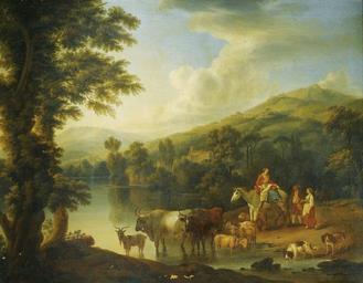| Keywords: Jakob Philipp Hackert - Flusslandschaft mit Reiterin (1771).jpg Artwork Creator Jacob Philipp Hackert 1771 oil canvas cm 71 5 91 5 accession number object history In the possession of the present owner for at least the last 60 years credit line Johann P Hackert ft 1771 ~ lower center signature / date http //www sothebys com/en/auctions/ecatalogue/2011/old-master-and-british-paintings/lot 93 lotnum html Sotheby's London 27 October 2011 lot 93 PD-old-100 DEFAULTSORT Hackert Jakob Philipp; Landscape Italy; Sotheby's 2012 Paintings by Jacob Philipp Hackert Landscape paintings of Italy 1770s landscape paintings Pastoral landscape paintings Images from Sotheby's |