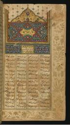 | Keywords: Jalal al-Din Rumi, Maulana - Incipit Page with Illuminated Headpiece - Walters W626170B - Full Page.jpg This incipit page from Walters manuscript W 626 has an illuminated headpiece introducing the 6th book daftar of the Masnavi islamic 1663 1073 ink and pigments on thin laid paper probably Kashmiri cm 26 5 15 accession number W 626 170B 83760 Ibrahim date and mode of acquisition unknown round seal impression Ibrahim on front flyleaf iia Henry Walters Baltimore date and mode of acquisition unknown Walters Art Museum Henry Walters Acquired by Henry Walters place of origin Bharat Walters Art Museum license 2D Manuscript by Rumi Walters MS 626 Media contributed by the Walters Art Museum needs category review |