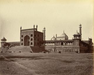 | Keywords: Jama Masjid, Delhi in the 1870s.jpg en Photograph of the Jami Masjid at Delhi from the Lee-Warner Collection taken by John Edward Saché in the 1870s The Jami Masjid was built by the Mughal emperor Shah Jahan ruled 1628-58 in Shahjahanabad the seventh city of Delhi founded by him in 1639 It was the city ™s principal congregational mosque for Friday prayers Situated on an outcrop of rock the prayer hall or sanctuary stands in a vast arcaded courtyard set on a plinth and reached by flights of steps At the time of construction it was the largest mosque in India The sanctuary has a imposing façade consisting of five arches on either side of a massive central arched entrance three bulbous domes and two marble minarets set at each end of the building Built in red sandstone it has white and black marble decoration including vertical white stripes inlaid on the minarets and vertical black stripes inlaid on the white domes This view of the mosque shows the entrance gate The photograph is taken from an album containing mainly architectural and topographical views of sites throughout Western and Northern India including a number of E D Lyon's views of Ahmadabad The album was formerly in the collection of Sir William Lee-Warner 1846-1912 who served in the Indian Civil Service and was a Member of the Council of India between 1902 and 1912 s 1870 http //www oldindianphotos in/2009_04_12_archive html Creator John Edward Sache other versions Custom license marker 2014 10 28 1882 Uploaded with UploadWizard Delhi in the 1870s Jama Masjid Delhi media to categorize more accurately John Edward Sache |