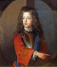 | Keywords: James Francis Edward Stuart 01.JPG Portrait of Prince James Francis Edward Stuart the Old Pretender Porträt Prinz Jakob Franz Eduard Stuart der jüngere Prätendent ~ 1700 oil canvas Institution Niedersächsisches Landesmuseum object history accession number uploader was Hajotthu at http //de wikipedia org de wikipedia other versions PD-old-100 James Francis Edward Stuart 18th-century oil portraits of children at half length Paintings in the Niedersächsisches Landesmuseum | ||||