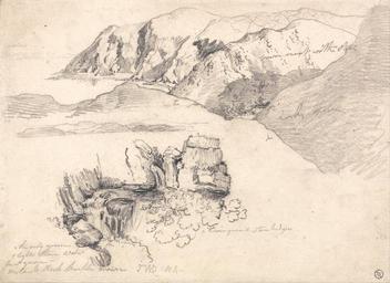 | Keywords: James Ward - Studies of a Hilly Coast, and a Rocky Waterfall - Google Art Project.jpg Inscribed in graphite lower center x brown green x stone hedges ; lower left o the only green p lighter than water green - Rock purple brown JWD RA Inscription _Marks T E Lowinsky owner's stamp TEL on bottom left Inscription _Signed_and_Dated Signed in graphite lower center JWD RA Not on View Graphite on medium smooth cream wove paper rocks hills coast landscape special url_id 1wF9t8_sDYZ78g PD-old-100-1923 1859 Drawings by James Ward Google Art Project works by James Ward |