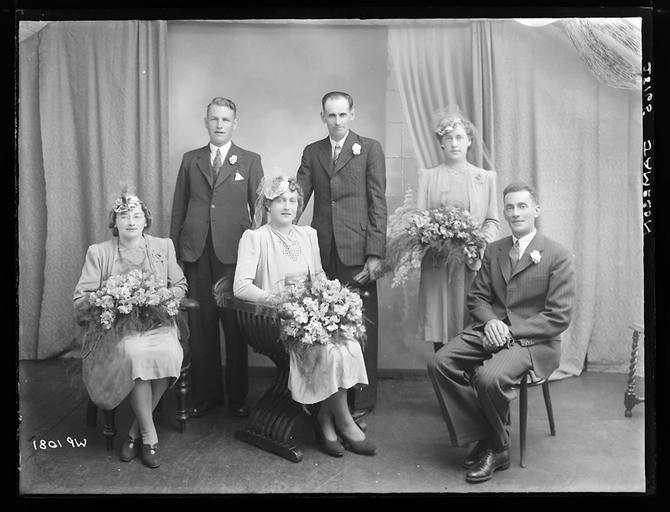 | Keywords: jameson proni allison allison & co. photographers allisoncophotographers wedding wedding portrait weddingportrait genealogy ancestry ulster armagh northern ireland northernireland monochrome blackandwhite groupshot people photo border black and white Creator: H. Allison & Co. Photographers  Date: 18th August 1944  Original Format: Glass Plate Negative, 9.5 X 7.5 inches  Description: Jameson family - Wedding Portrait  PRONI Ref: D2886/W/Wedding/621  Copying and copyright: Please see www.proni.gov.uk/index/research_and_records_held/copying_...  For Copy Orders, contact: Email: proni@dcalni.gov.uk For fees and charges see: www.proni.gov.uk/index/about_proni/are_there_any_fees_and... Creator: H. Allison & Co. Photographers  Date: 18th August 1944  Original Format: Glass Plate Negative, 9.5 X 7.5 inches  Description: Jameson family - Wedding Portrait  PRONI Ref: D2886/W/Wedding/621  Copying and copyright: Please see www.proni.gov.uk/index/research_and_records_held/copying_...  For Copy Orders, contact: Email: proni@dcalni.gov.uk For fees and charges see: www.proni.gov.uk/index/about_proni/are_there_any_fees_and... |