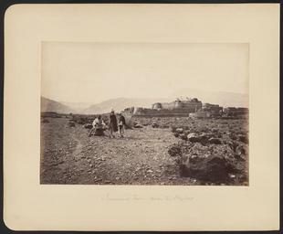 | Keywords: Jamrūd Fort near the Khyber WDL11467.png Artwork ru Шепе д Ча льз асцвет тво чества в 1858 1878 годах fr Shepherd Charles actif de 1858 à 1878 en Shepherd Charles flourished 1858 1878 zh 查尔斯·谢泼德,全盛时 :1858 1878 年 pt Shepherd Charles prosperou entre 1858 e 1878 ar شيبرد، تشارلز، ازدهرت أعماله في 1858-1878 es Shepherd Charles prosperó entre 1858 y 1878 ru К епость Джам уд возле Хайбе а fr Fort de Jamrūd près du col de Khyber en Jamrūd Fort near the Khyber zh 伯尔附近的贾姆鲁德要塞 pt Forte de Jamrūd próximo a Khyber ar حصن جَمْرود بالقرب من معبر خيبر ru Эта фотог афия к епости Джам уд входит в альбом едких исто ических фотоснимков на кото ых изоб ажены люди и места связанные со Вто ой англо-афганской войной Т ое п едставителей племени на пе еднем плане снимка одеты в свободные халаты и накидки <em>dōpâta</em> на головах у них тю баны <em>longi</em> а в уках - джезайлы удлиненные тяжелые мушкеты К епость Джам уд асположена возле восточного входа в Хайбе ский п оход на те ито ии сов еменного Пакистана ст атегически важный путь че ез го ную цепь Гиндукуш идущий вдоль исто ического Великого шелкового пути и в XIX веке соединявший Б итанскую Индию с Афганистаном а этом месте в 1836 1837 годах состоялось г андиозное с ажение между Сикхской и Ду анийской импе иями есмот я на то что на снимке к епость выглядит обветшалой она была важным п омежуточным пунктом на пути че ез Хайбе ский п оход и место асположением штаба Хайбе ского ст елкового полка вспомогательного под азделения Б итанской индийской а мии Вто ая англо-афганская война началась в нояб е 1878 года когда Великоб итания опасаясь как ей казалось астущего влияния России в Афганистане вто глась в эту ст ану с те ито ии Б итанской Индии Пе вый этап войны закончился в мае 1879 года подписанием Гандамакского догово а позволившего афганцам сох анить внут енний суве енитет однако заставившего их уступить конт оль над внешней политикой своей ст аны б итанцам Военные действия возобновились в сентяб е 1879 года после антиб итанского восстания в Кабуле и окончательно заве шились в сентяб е 1880 года ешающей битвой за Кандага Данный альбом включает по т еты б итанских и афганских лиде ов и военнослужащих фотог афии п остых афганских людей изоб ажения б итанских военных лаге ей военных действий ст оений пейзажей к упных и небольших го одов Все изоб аженные на фотоснимках места находятся на те ито ии сов еменных Афганистана или Пакистана в то в емя бывших частью Б итанской Индии Около т ети п едставленных в альбоме фотог афий выполнены Джоном Бе ком около 1843 1900 гг д угая т еть сэ ом Бенджамином Симпсоном 1831 1923 гг а оставшаяся часть несколькими д угими фотог афами Авто ы некото ых фотоснимков неизвестны Возможно что составителем альбома был один из членов б итанского п авительства в Индии однако это п едположение не подтве ждено Каким об азом альбом попал в Библиотеку Конг есса неизвестно <br>Афганские войны; К епости и фо тификационные соо ужения; Хайбе ский п оход Афганистан и Пакистан ; Го ные п оходы; Го ы fr Ce cliché du fort de Jamrūd est extrait d'un album de photographies historiques rares de personnalités et de sites associés à la seconde guerre anglo-afghane Les trois hommes au premier plan de la photographie sont des membres de tribus Ils portent d'amples tuniques des <em>longi </em> turbans et des <em>dōpâta </em> châles et ils tiennent des jezails lourds mousquets allongés Le fort est situé à l'entrée est du col de Khyber aujourd'hui au Pakistan lieu stratégique important permettant de franchir la chaîne de montagnes de l'Hindu Kush le long de l'antique route de la soie qui reliait l'Inde britannique à l'Afghanistan au XIX<sup>e</sup> siècle Il fut le site d'une bataille majeure entre les Empires Sikh et Durrani de 1836 à 1837 Bien que le fort semble en ruine il s'agissait d'un point de transit essentiel pour les traversées du col et il devint le siège d