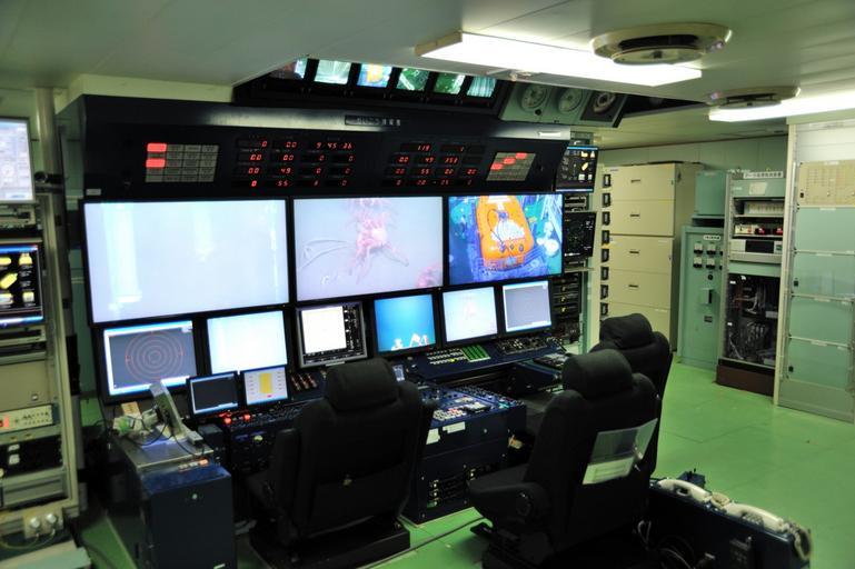 Keywords: JAMSTEC Kairei control room.jpg en Japan Agency for Marine-Earth Science and Technology's Kairei Control Room of ROV Kaikou ja かいれい内部にあるかいこう操 室 Own nattou 2010-05-22 Kairei ship 1996