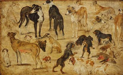 | Keywords: Jan Brueghel (I) - Studies of animals (dogs).jpg Artwork Q27979319 de Tierstudie Hunde en Studies of Dogs oil oak panel cm 34 55 5 ; Langswitch Rahmenmaße frame 44 5 × 66 × 4 5 cm Institution Kunsthistorisches Museum GG_6988 object history Slg Gustav von Benda Wien; 1932 Legat Gustav von Benda http //www khm at/de/objektdb/detail/336/ Kunsthistorisches Museum c 1616 creator Jan Brueghel I Other versions PD-old-100 Paintings by Jan Brueghel the Elder in the Kunsthistorisches Museum Brueghel Jan 1 1610s paintings in Austria 17th-century paintings of dogs Greyhounds in 17th-century art Greyhounds in art by painters from Flanders Greyhounds in art alone Studies by Jan Brueghel I 1616 Galgo español Sighthounds in art 17th-century oil on canvas paintings in Austria |