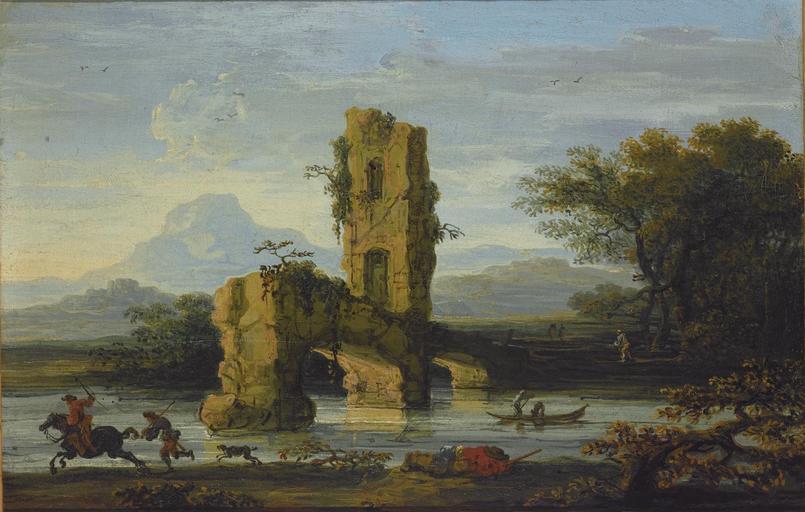 Keywords: Jan de Momper - Italianate river landscape with a rider and a ruined bridge.jpg Jan de Momper Antwerp or 1614 1617 - ca other date or 1684 1688 Rome oil canvas cm 46 6 71 2 accession number object history credit line exhibition history http //www sothebys com/en/auctions/ecatalogue/2007/the-robert-and-angelique-noortman-collection-paintings-and-works-of-art-from-chateau-de-groote-mot-am1037/lot 18 lotnum html Sotheby's Amsterdam 17 December 2007 lot 18 PD-old-100 Jan de Momper Landscape paintings of Italy 17th-century landscape paintings Images from Sotheby's |
