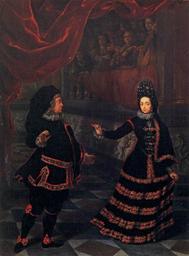 | Keywords: Jan Frans van Douven - Electress Palatine Dancing with Her Husband - WGA6667.jpg Artwork Creator Jan Frans van Douven 2half other date century 17 Oil on canvas size cm 55 41 Institution Palazzo Pitti Galleria Palatina object history credit line accession number WGA link 6667 http //www wga hu/art/d/douven/dancing jpg http //www wga hu/html/d/douven/dancing html PD-old-100 painting portrait Dutch 1651-1700 WGA form painting WGA type portrait WGA School Dutch WGA time period 1651-1700 Jan Frans van Douven 17th-century portrait paintings in the Galleria Palatina Florence Johann Wilhelm Elector Palatine Anna Maria Luisa de' Medici 1680s portrait paintings M 1651-1700 paintings 17th-century family portraits of royalty Dance in paintings Double portrait paintings of wedded couples Red drapery in portrait paintings |
