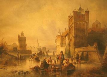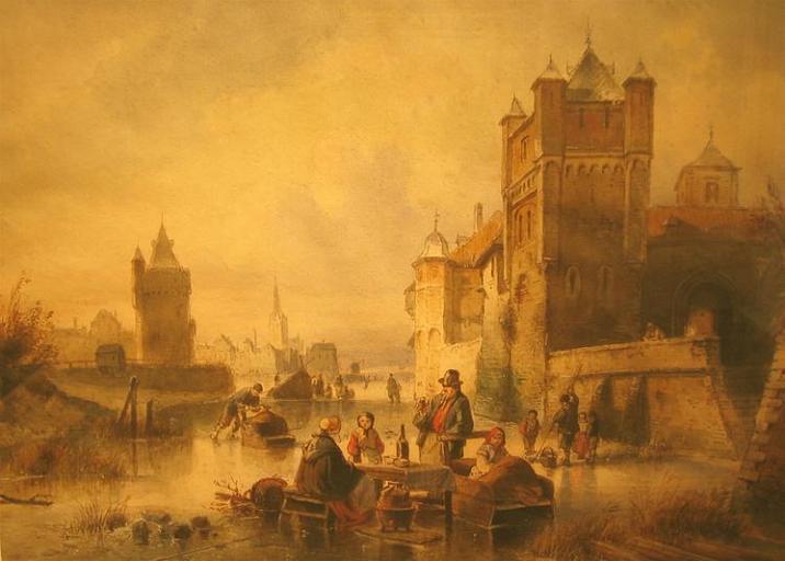 | Keywords: Jan Michiel Ruyten - Figures on the ice near a town.jpg Artwork Creator Jan Michiel Ruyten 1831-1881 watercolor size cm 28 38 accession number object history credit line Sold at Peter Pappot Art Gallery http //www peterpappot com/collection/pappot/painting/229/ PD-old-100 Jan Michiel Ruyten Paintings of winter Ice skating in art |