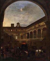 | Keywords: Jan Miel - The Courtyard of Palazzo Nardini in Rome.jpg Artwork creator Jan Miel other date ~ 1650 oil on canvas size cm 143 116 Institution Palazzo Barberini Rome object history credit line accession number https //collezionedarte bancaditalia it/portal/en/web/guest/opere p_auth Jy6iiuXG p_p_id opere_WAR_mbifrontendportlet p_p_lifecycle 1 p_p_state normal p_p_mode view p_p_col_id column-1 p_p_col_pos 1 p_p_col_count 2 _opere_WAR_mbifrontendportlet_myaction mostraOpera _opere_WAR_mbifrontendportlet_id 335 PD-old-100 Jan Miel Paintings of Rome |