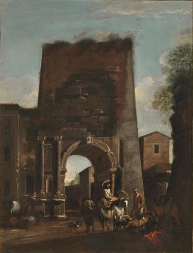 Keywords: Jan Miel and Viviano Codazzi - View of the Arch of Titus with horsemen at rest.JPG Artwork creator Jan Miel and creator Viviano Codazzi en View of the Arch of Titus with horsemen at rest 1648-1657 http //www pandolfini it/it/asta-0001-1/viviano-codazzi-taleggio-bergamo-1606-circarom asp oil canvas cm 71 56 Auctioned at Pandolfini on 21 April 2015 in Milan; lot 103 PD-old-100 Jan Miel Viviano Codazzi 17th-century landscape paintings Arch of Titus Rome in art |